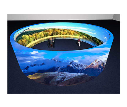 讓LED顯示屏與天花板精妙地融合為一體,成為項目施工團隊遇到的一大難題。由于此次LED顯示屏安裝位置是在天花板,而且安裝弧度較小,如果是采用傳統(tǒng)LED顯示屏的安裝方式,只需在制作顯示屏鋼結(jié)構(gòu)的時候做成弧形,再安裝常規(guī)的硬模組即可。